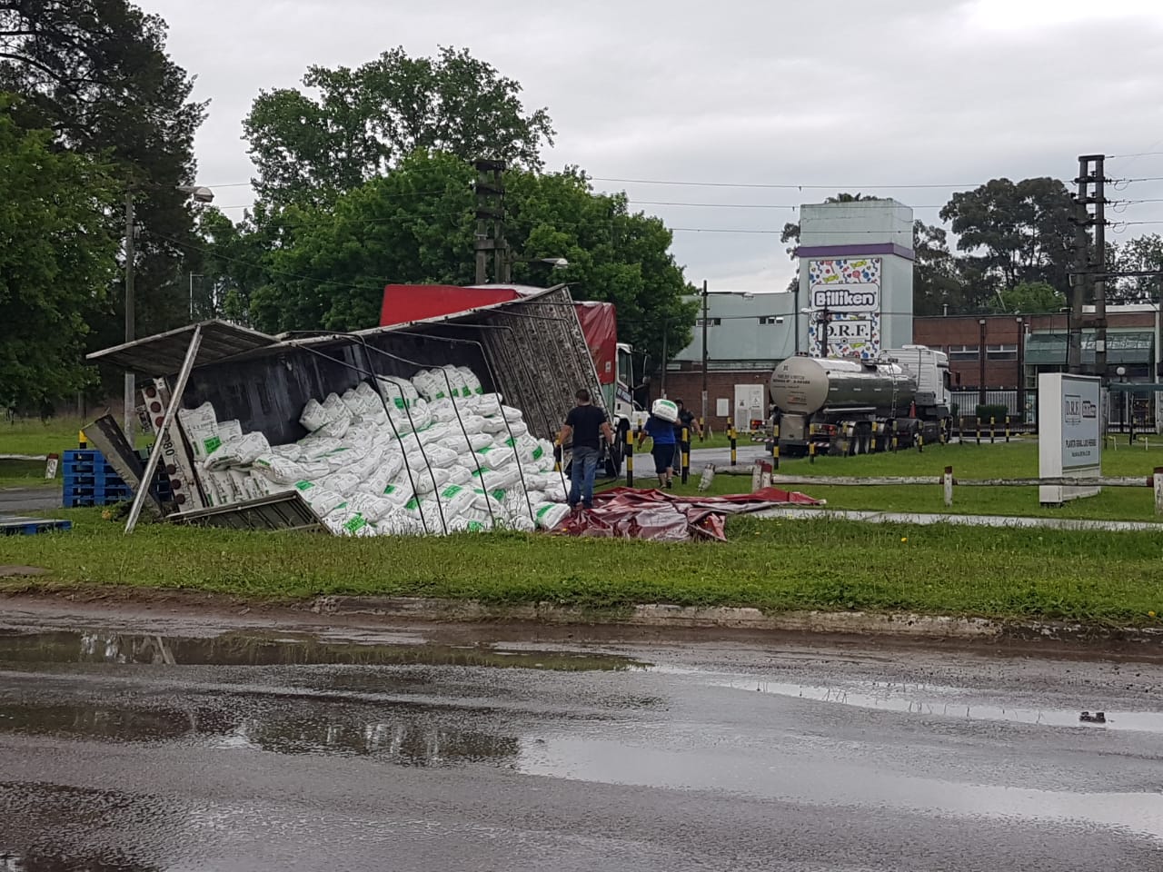 Según informaron testigos que presenciaron el hecho, el conductor intentó maniobrar para doblar en esa intersección cuando las cubiertas traseras del vehículos cayeron en una zanja, lo que produjo el vuelco del acoplado.