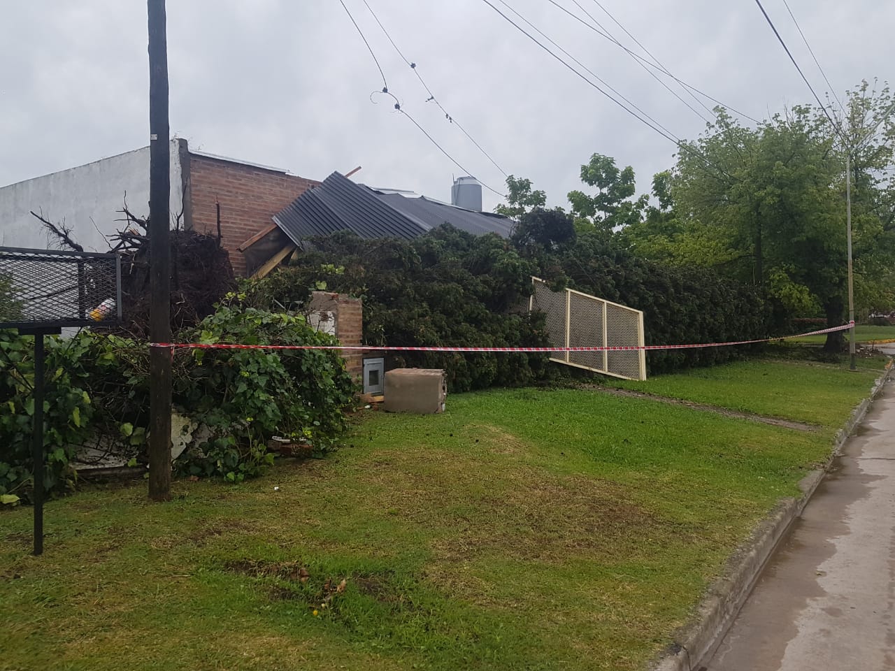 Según el parte de bomberos hubo: Voladura de techo (completo) en vivienda de la Barraca, caída de planta sobre ruta 40 frente a la empresa Megafud, Incendio de cables y poste en el inicio de calle Las Heras, caída de planta en 9 de Julio y Langan, caída de planta en Las Heras y Avellaneda (está trabajando personal Municipal), caída de planta en calle Moreno al 400 (está trabajando personal Municipal), Caída de cables de media tensión en Pedrayes (está trabajando personal de Edenor).