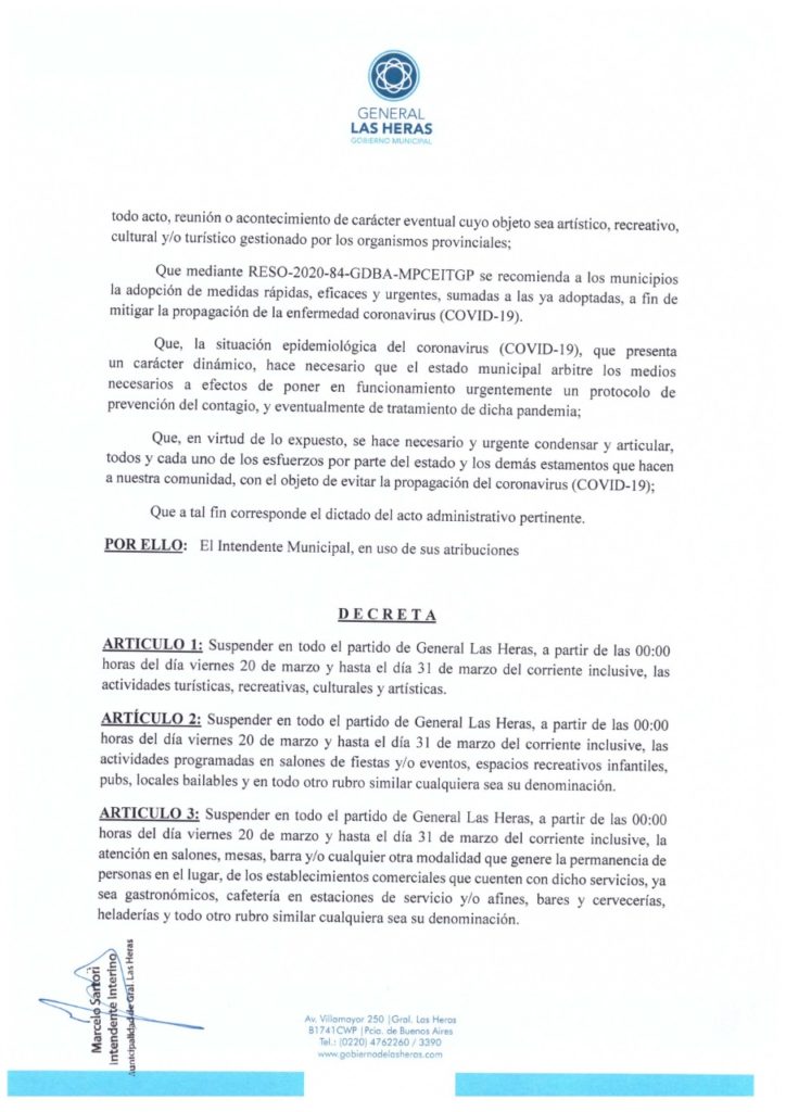 Coronavirus: Mediante decreto, el municipio reglamento el funcionamiento de los comercios