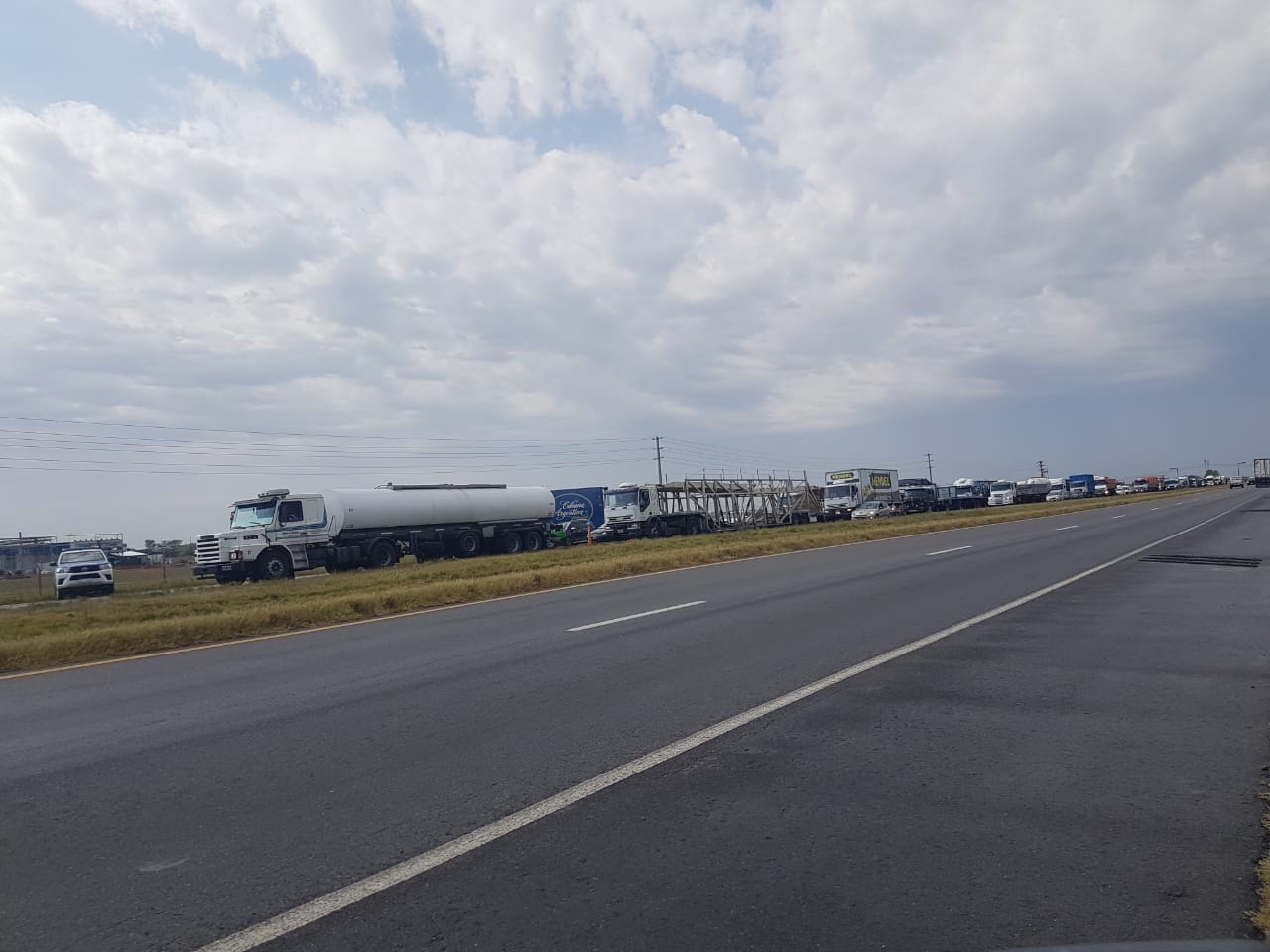 Como primera media cortaron el acceso quemando neumáticos en el ingreso a la planta, impidiendo el ingreso y egreso de personal y vehículos, después se se redujo la circulación en la ruta 6 a un solo carril y ya cerca de las 11 de la mañana corte total con intervalos de 15″ en la ruta 6 mano a Lujan, con mas de 1km de cola.