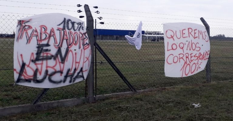 Los trabajadores de la Cabaña Argentina mantiene una protesta en el ingreso a la planta en reclamo de que les garanticen el 100% del pago de la indemnización, ya que desde la empresa aseguraron que se pagará el 50% de indemnización. También se acercaron al lugar solidarizándose con los trabajadores despedidos del gremio ATILRA y ATE.