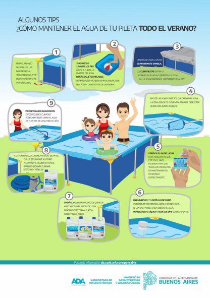 – Si usas juegos/juguetes inflables para el agua, siempre deben ingresar limpios. Es posible enjuagarlos con agua y unas gotitas de lavandina.