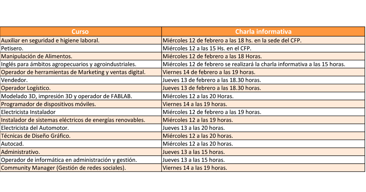 El centro de Formación Profesional N°401 de General Las Heras dio a conocer los cursos que se llevaran a cabo, para este Ciclo Lectivo 2020.