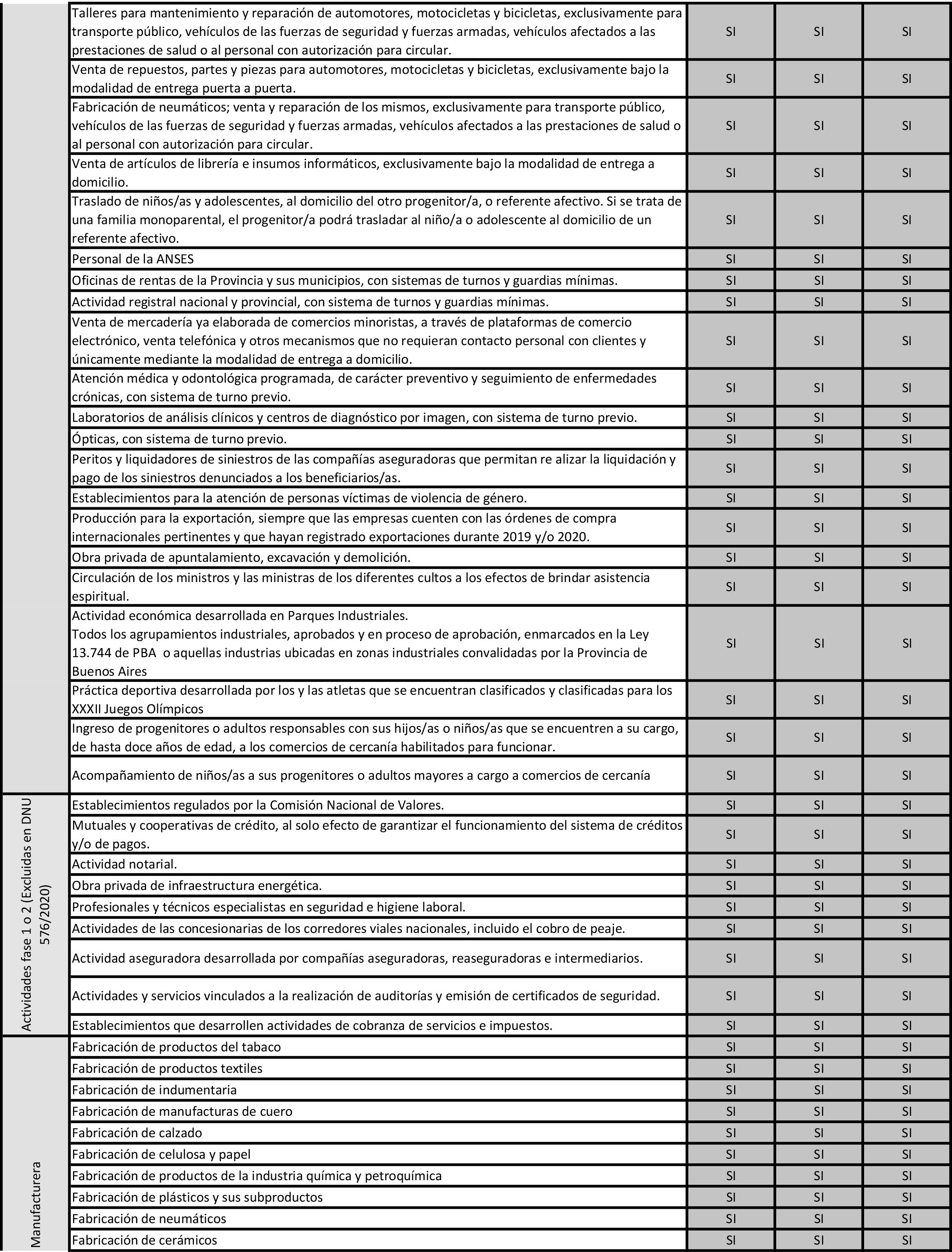 En los 35 municipios que forman parte del área metropolitana (AMBA), se definió una “fase 3 escalonada” del ASPO, caracterizada por la apertura y habilitación de diferentes actividades y rubros en forma paulatina: a partir del lunes 20 de julio se pondrán en marcha todas las industrias manufactureras; en tanto el miércoles 22 del corriente podrán reabrir comercios de cercanía y agencias de juego oficiales; y a partir del 27 se sumarán servicios inmobiliarios y de mudanza, servicios jurídicos, notariales de contaduría y auditoría, atención de profesionales de la salud, servicio de mantenimiento en hogares y de peluquería y estética. Todas las nuevas actividades que se suman a la fase tres escalonada, deberán ser ejercidas bajo estricto protocolo de prevención.
