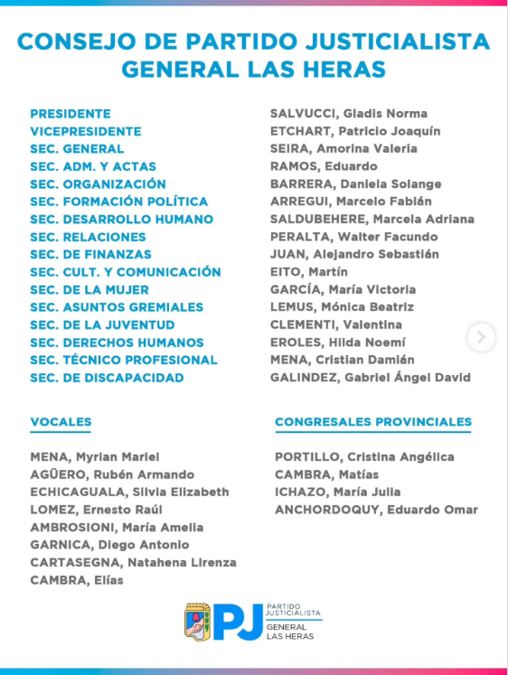 El Partido Justicialista de General Las Heras definió la renovación de sus autoridades a través de una lista de unidad, en una construcción que articula distintos sectores del peronismo local y apuesta a consolidar un esquema político con anclaje territorial.