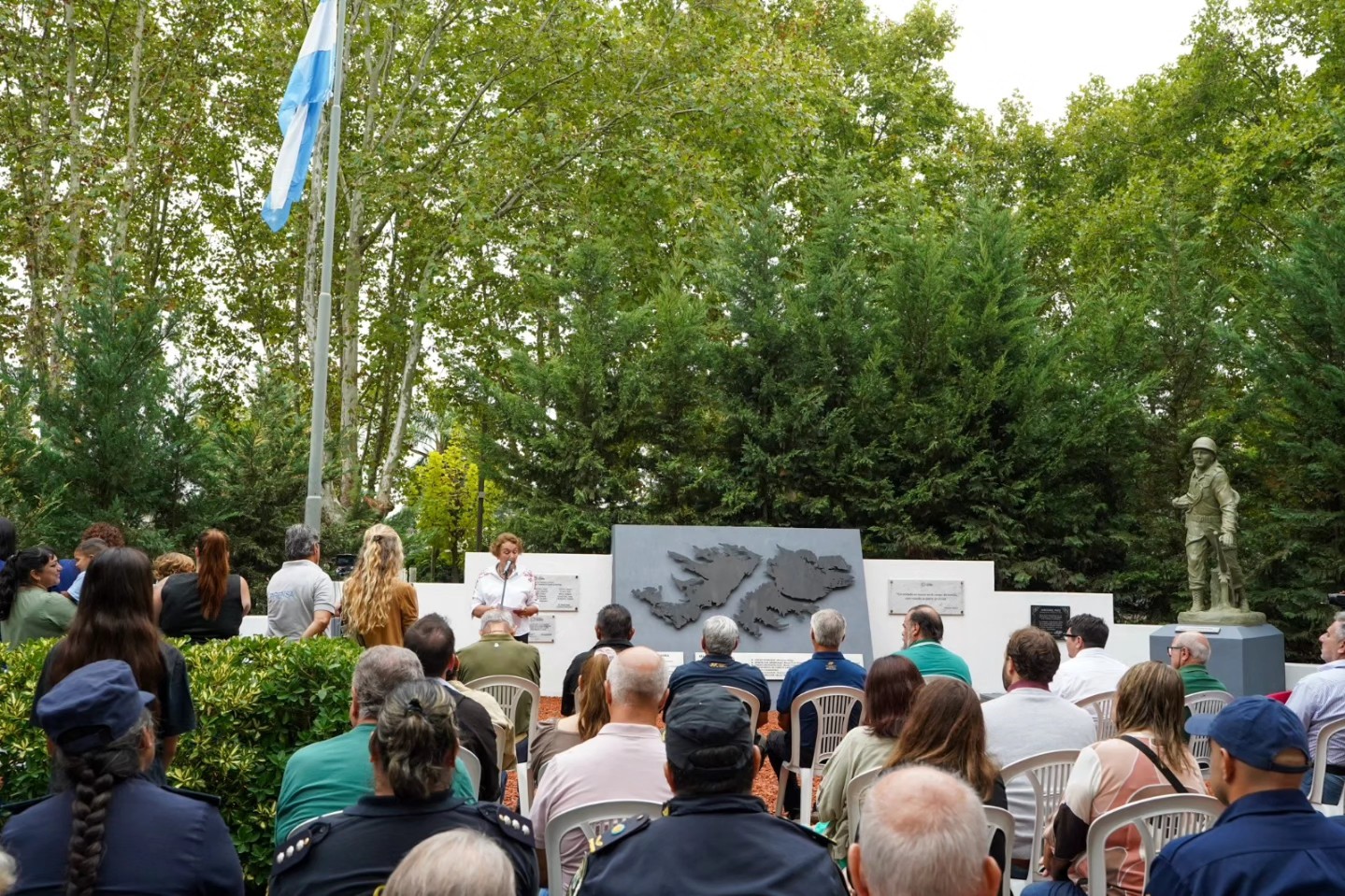 Durante la ceremonia, tomaron la palabra Nela Poggi, el veterano Fernando Ferrero y el intendente Juan Manuel Cerezo, quienes destacaron la importancia de sostener viva la memoria y transmitirla a las nuevas generaciones.