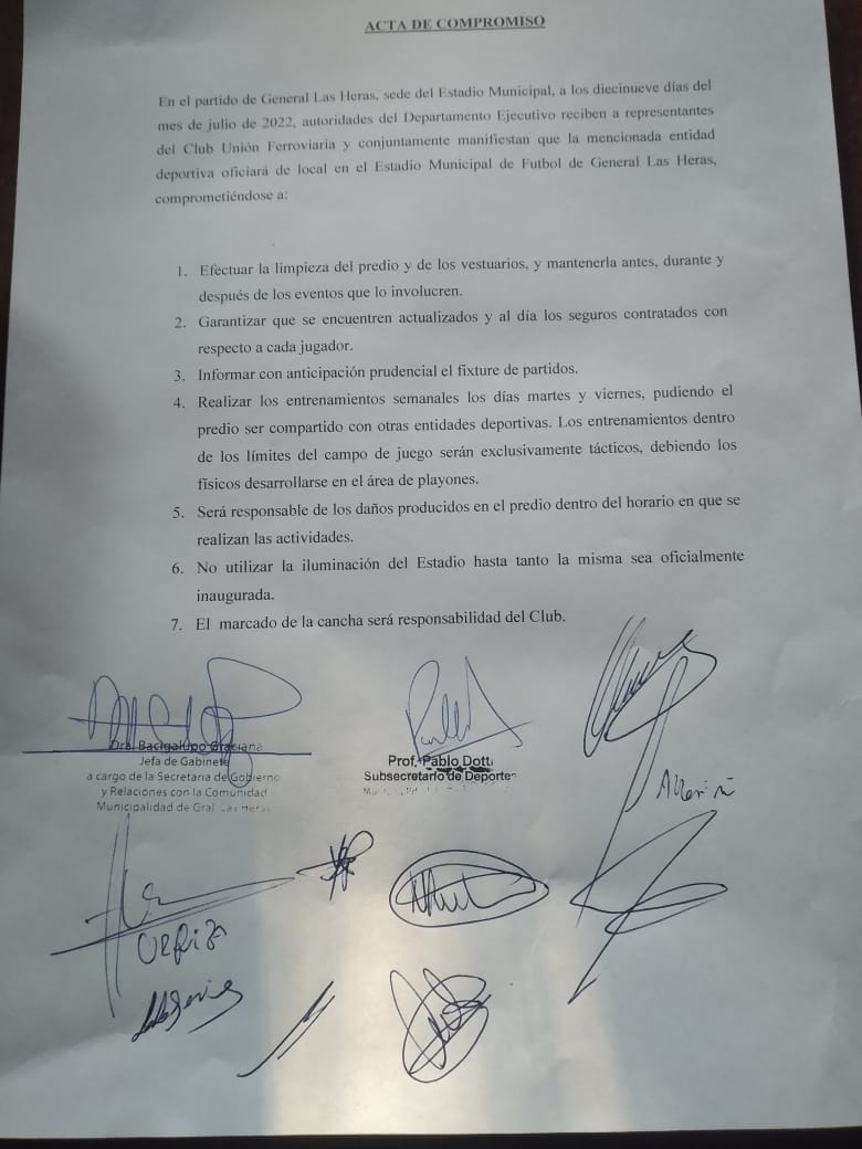 El día martes el secretario de deportes Pablo Dotti, el secretario de gobierno Nicolás De Rose y la jefa de gabinete Graciana Bacigalupo, se reunieron con representantes del club Unión Ferroviaria, en la cual este ultimo presento algunos reclamos.