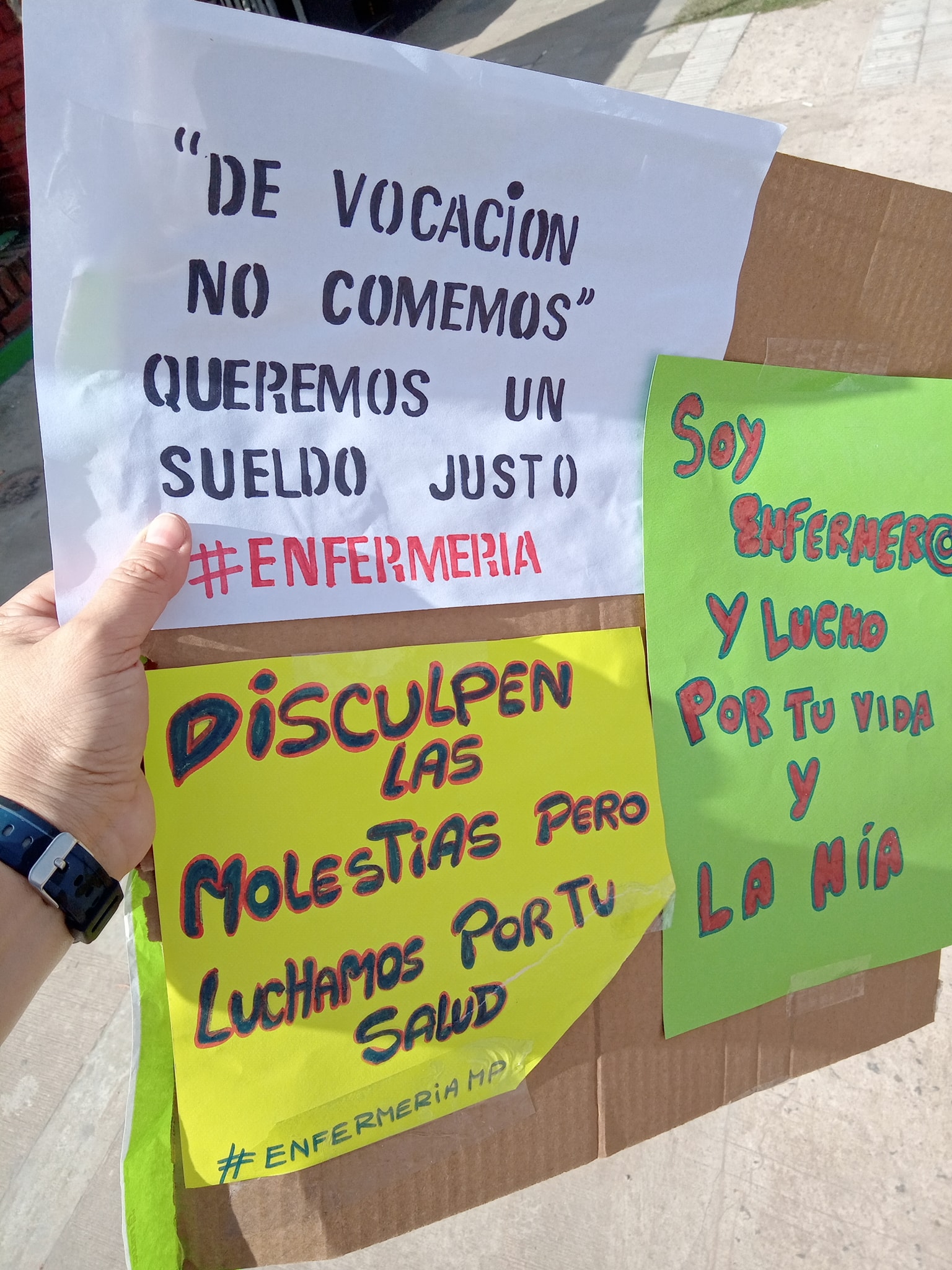La delegada de enfermería, Carolina Cabrera, informó al respecto “Estamos agotados y cansados, luchamos por un sueldo básico porque actualmente trabajamos 14 hs. por un salario de 22 mil pesos” expresó.